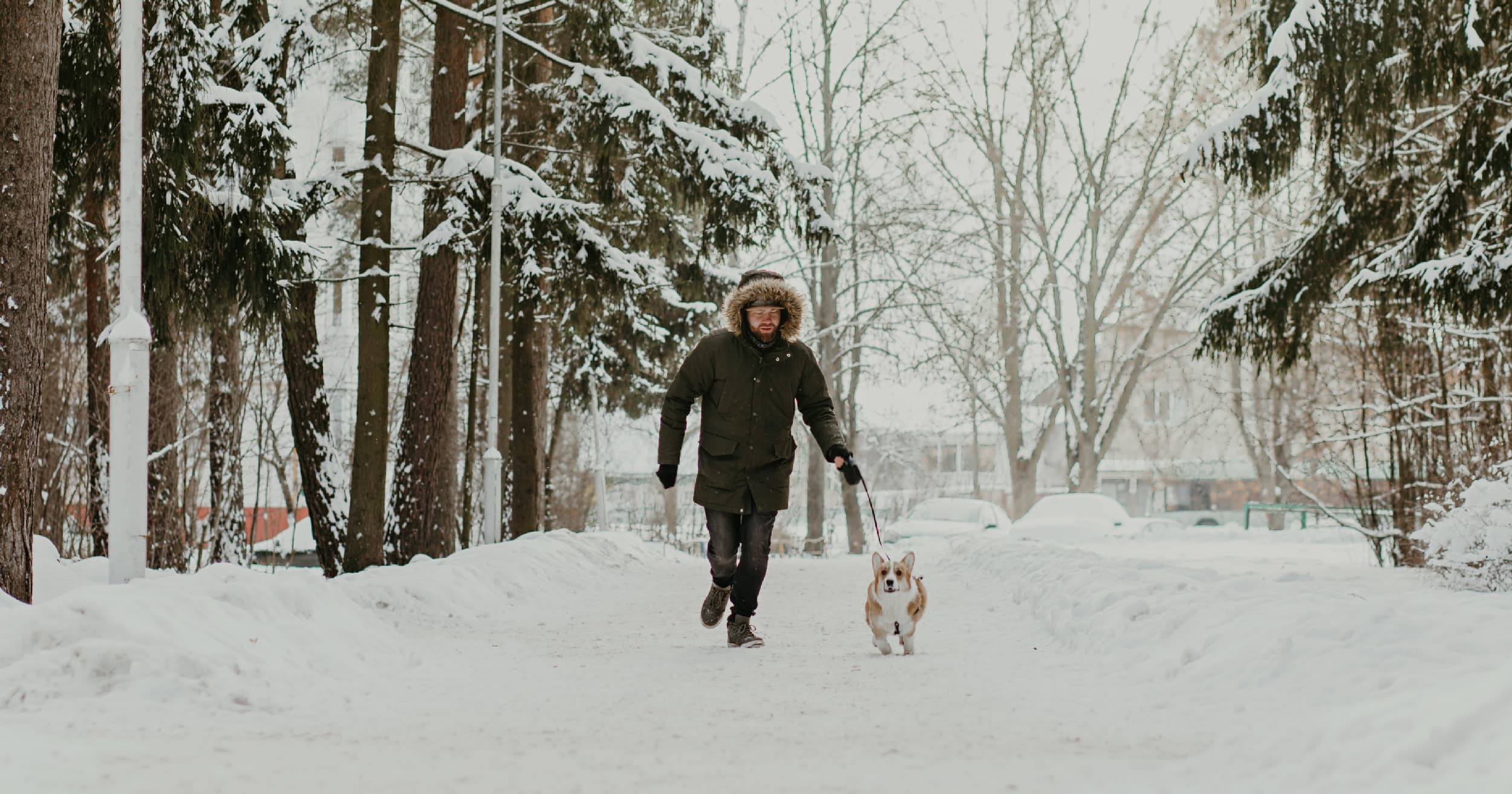 A lot of dogs like to run and play in the snow, but over time, snow and ice can collect between their paw pads, making it uncomfortable and potentially painful for them to walk. You can help prevent snow and ice clumps forming by keeping the hair between their paw pads trimmed and stopping periodically on your walk to remove built up snow or ice from their paws.
